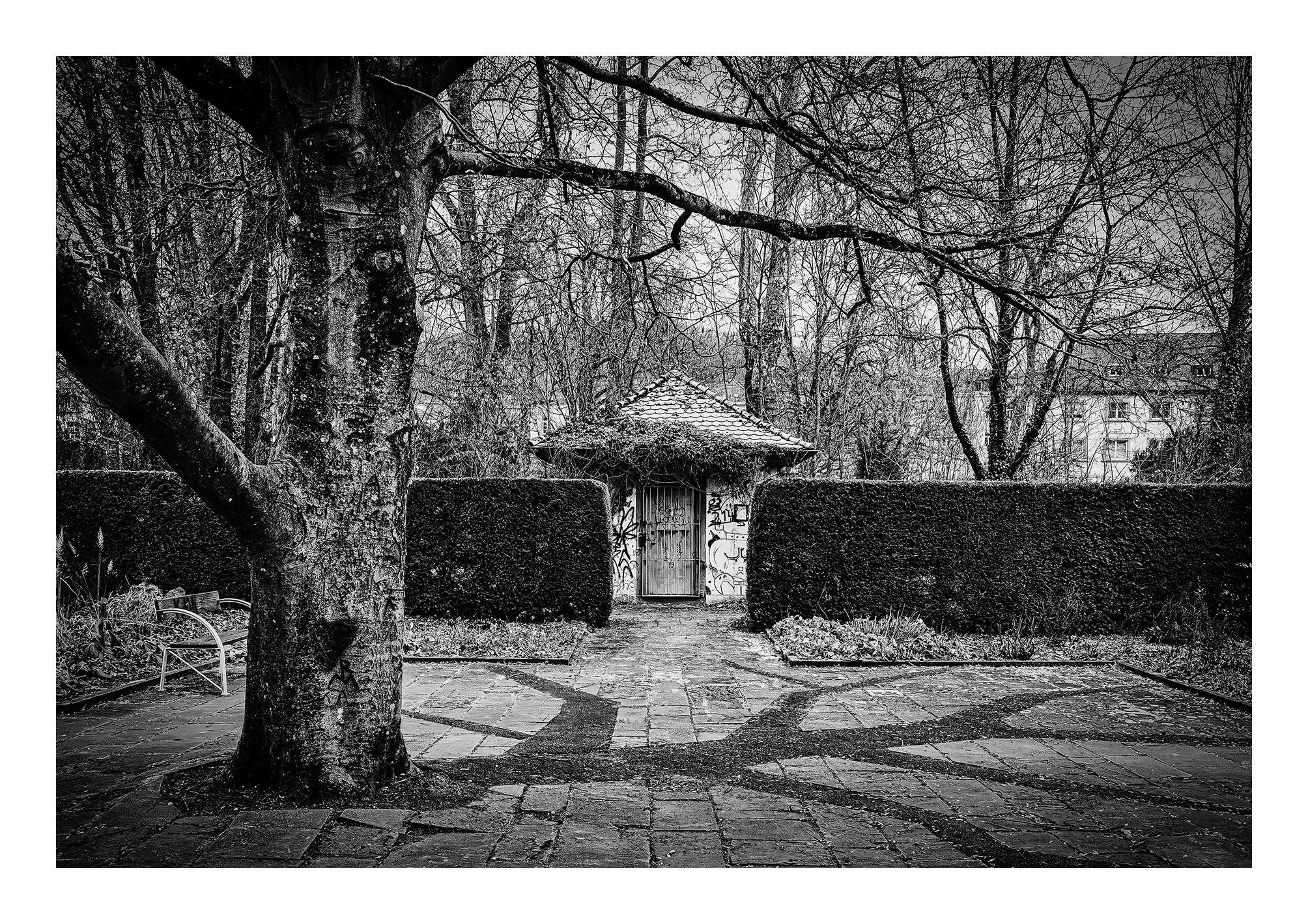 Es war rein zufällig, dass ich bei YouTube auf diverse Beiträge zur Schwarzweiß-Fotografie gestoßen bin, darunter auch welche zur banalen Fotografie. Banal bedeutet hier, dass es sich um alltägliche Gegenstände handelt, die nicht besonders arrangiert sind, sondern einfach so in der Gegend herumstehen. Ich fand diese Bilder sehr ansprechend, obwohl sie von meinen üblichen Genre der Naturfotografie abweichen. Natürlich habe ich so manches Bild auch schon in schwarzweiß umgewandelt, wie man in der Galerie unter „Zeitlose Momente“ sehen kann. Aber dabei handelt es sich meist um Bilder, die mir in Farbe nicht so gut gefielen oder die ich im Rahmen eines Fotokreis-Projektes angefertigt habe. Jetzt will ich bewusst losziehen, um ganz gezielt Bilder für den Schwarzweiß-Modus zu fotografieren. Auch der banale Charakter gefällt mir, denn hier kann ich ganz losgelöst von irgendwelchen Erwartungen oder Vorstellungen einfach das ablichten ,was mir vor die Linse gerät. Und das ist erstaunlich vielseitig. Selbst die Bearbeitung sprengt das sonst vorsichtige Taktieren zur Vermeidung von Übertreibungen, denn bei diesen Bildern schiebe ich viele Regler ins Extreme, um einen harten Look zu kreieren, der mir bei dieser Art Bild sehr gut gefällt.
