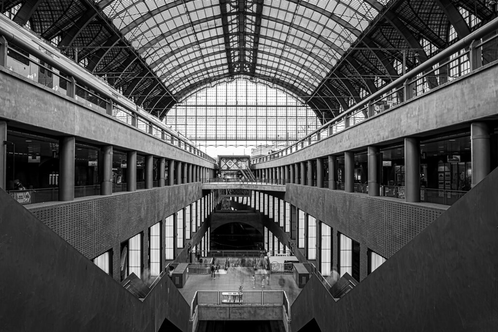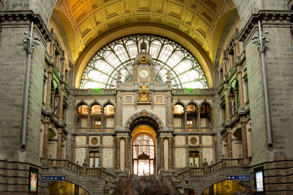 An unserem zweiten Tag fuhren wir mit dem Zug nach Antwerpen, wo uns der wunderschöne Bahnhof nicht nur fotografisch in seinen Bann zog. Das als „Eisenbahnkathedrale“ bekannte Gebäude weist einen prunkvollen Stilmix aus dem Neobarock, der Neogotik und der Neorenaissance auf und macht den zwischen 1899 und 1905 erbauten „Palast“ zu einem der schönsten Bahnhöfe der Welt. Für den Bau wurden rund 20 verschiedene Marmor- und andere Gesteinssorten verwendet. Man hätte Stunden in diesem herrlichen Bau verbringen können, aber leider war unsere Zeit begrenzt und wir wollten auch noch die Stadt selbst erkunden. Die zweitgrößte Stadt Belgiens blickt auf eine lange Geschichte zurück. Im 15. und 16. Jahrhundert gehörte Antwerpen zu den größten Städten der Welt und war eine führende Handelsmetropole. Aus dieser „Goldenen Zeit“ stammt die beeindruckende Architektur, die insbesondere am Grote Markt mit seinem prächtigen Rathaus und den historischen Zunfthäusern deutlich wird. Natürlich ist der Besuch des zweitgrößten Hafens in Europa ein Muss, wobei das Hafenhaus durch die architektonisch beeindruckende Verbindung von Neu und Alt besonders ins Auge fällt.