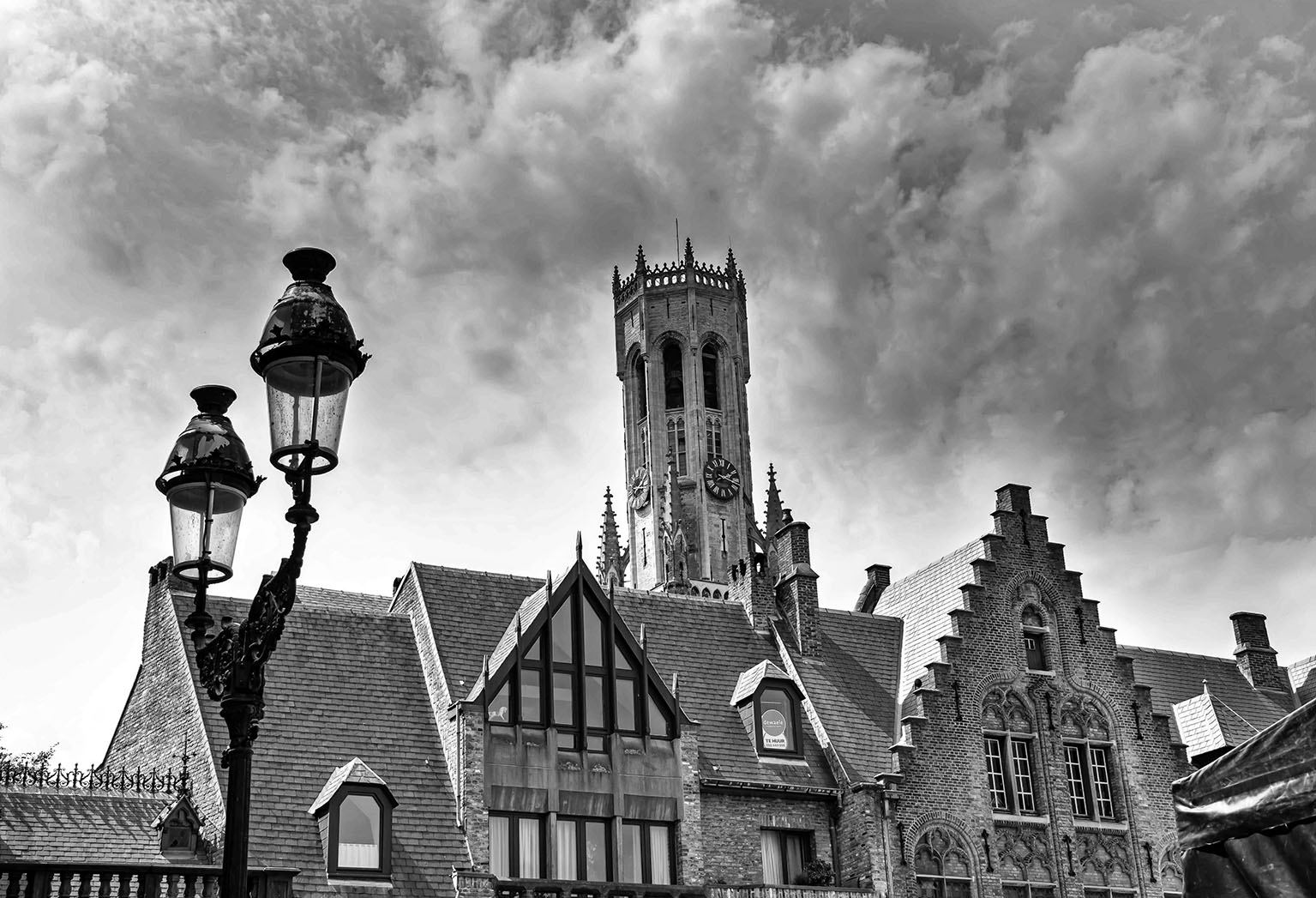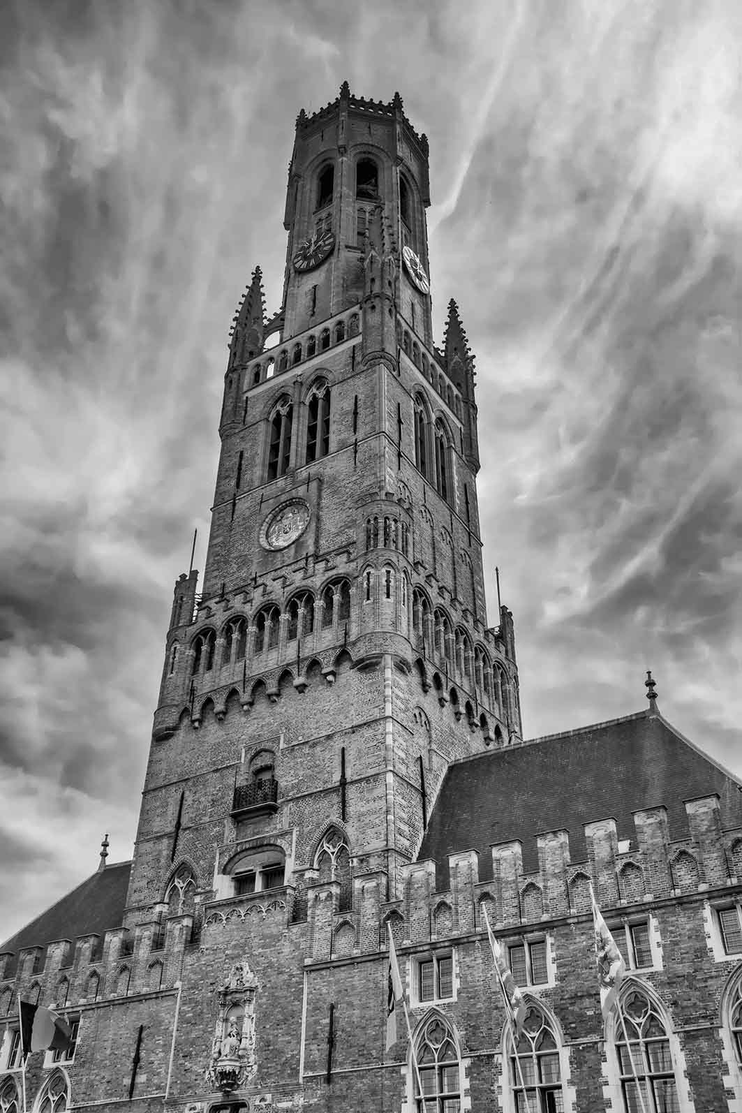 Als letzten Höhepunkt fuhren wir nach Brügge – das Venedig des Nordens – berühmt wegen seines Netzes aus Kanälen, früher wichtige Handelswege, heute beliebte Touristenattraktion. Und auch wir ließen uns gemütlich durch die „Reien“ gondeln. Das gesamte historische Stadtzentrum wurde im Jahr 2000 von der UNESCO zum Weltkulturerbe erklärt. Es ist von mittelalterlicher Architektur, insbesondere vom Stil der Backsteingotik, geprägt und es fiel einem wirklich schwer, sich in Ruhe auf ein Motiv einzulassen, da es an jeder Ecke etwas Interessantes und Aufregendes zu entdecken gab. Besonders beeindruckend war der Belfried, der 83m hohe Glockenturm, der im 13. Jahrhundert erbaut und nicht nur als Wachturm sondern auch als Schatzkammer genutzt wurde. Durch die vielen Touristen war es jedoch nicht leicht, geeignete Blickwinkel zu finden. Ich fotografierte daher mit nach oben gerichteter Kamera, um die Menschenmassen auszublenden. Es war wirklich ein einziges Gewühle, was für mich persönlich die Eindrücke ein bisschen schmälerte. Eines ist aber sicher, diese Exkursion war nicht nur wegen des leckeren Bieres und der Schokolade ein Erfolg, sondern auch eine wertvolle fotografische Erfahrung und ein tolles Gruppenerlebnis.