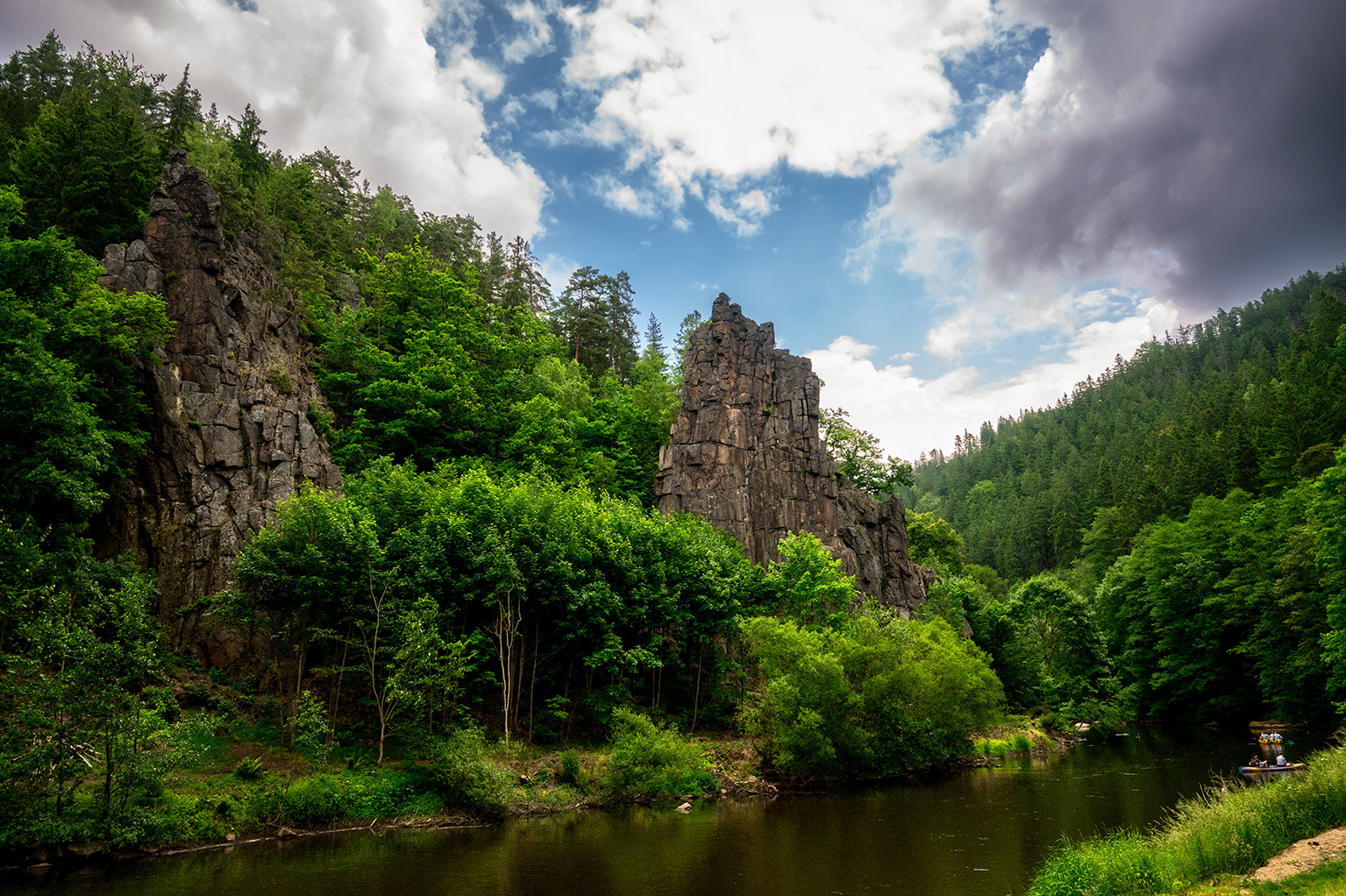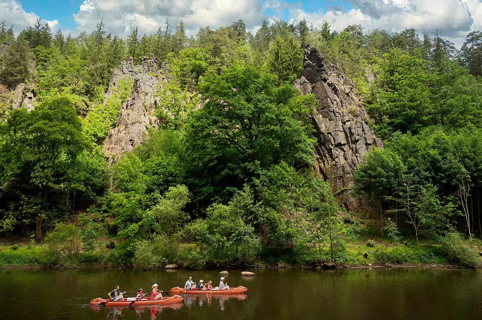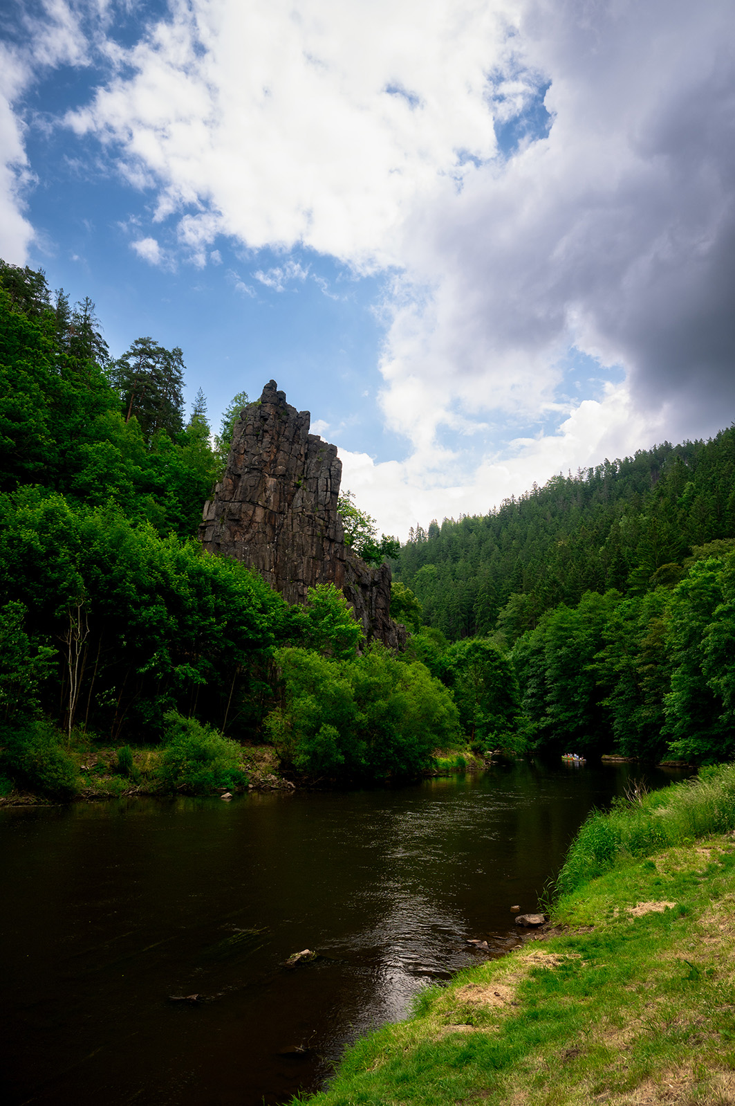 Ein Ausflug zum Hans-Heiling-Felsen führte uns in eine sagenumwobene Landschaft. Die Felsformation befindet sich im Egertal zwischen Karlsbad und Loket und ist ein beliebtes Ausflugsziel für Kletterer, Wanderer und Kanufahrer. Der Legende nach soll der Zauberer Hans Heiling sich in ein einfaches Mädchen verliebt haben, obwohl er einer Wassernixe versprochen hatte, sich nie mit einer Sterblichen einzulassen. Als er dieses Mädchen sogar heiraten wollte, verwandelte die erboste Nixe den gesamten Hochzeitszug in Stein. Noch heute kann man die versteinerten Figuren mit viel Fantasie in den Felsformationen erkennen. Kein Wunder, dass sich viele Künstler und Gelehrte, darunter die Gebrüder Grimm und Johann Wolfang von Goethe, davon inspirieren ließen.
