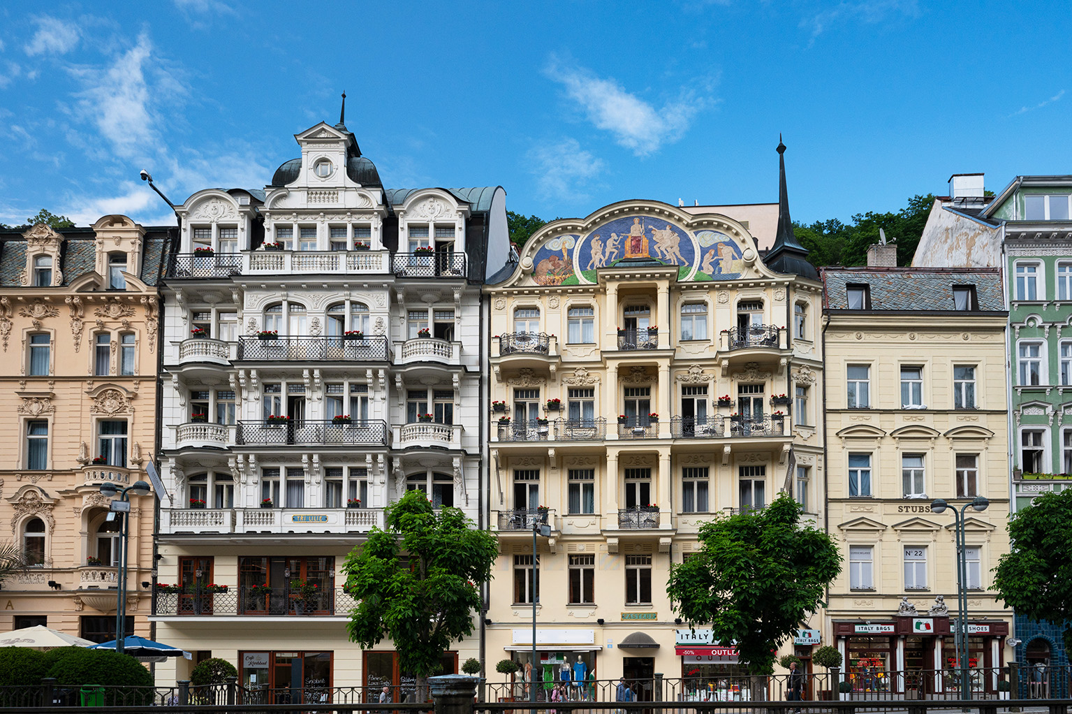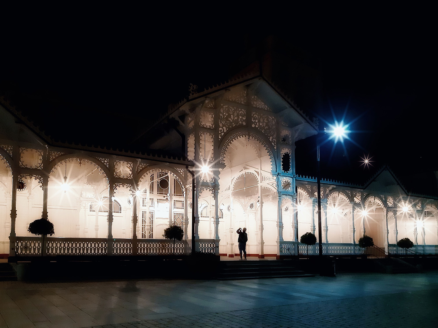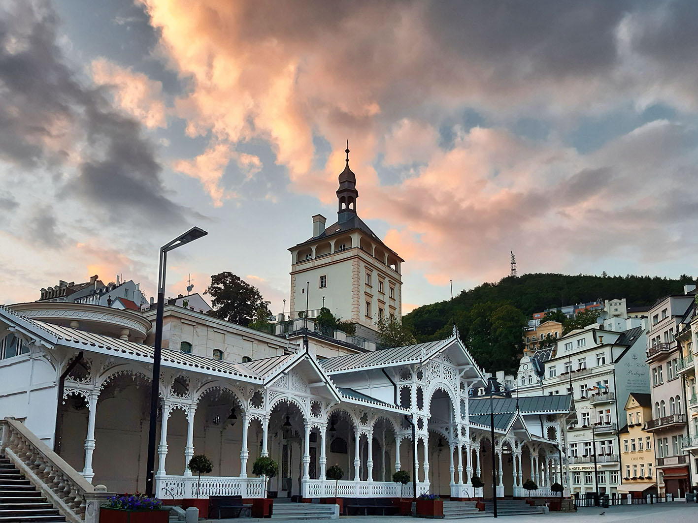 Daher waren wir mehr als begierig, endlich in jene Stadt zu gelangen, die zu den bedeutendsten Kurstädten Europas zählt. Berühmt ist sie nicht nur wegen ihren 12 Heilquellen, sondern auch wegen ihren prunkvollen Jugendstilbauten, den Kolonnaden und ihren vielfältigen Kulturangeboten. Besonders die Kolonnaden, die als Herzstücke des Kurlebens gelten, sind von besonderem Reiz. Diese überdachten Säulengänge spiegeln die verschiedenen Baustile und Epochen wider. Neben diesen fotografisch sehenswerten Gebäuden fanden wir auch interessante Motive in der Porzellanmanufaktur Thun 1794, im Schmetterlingshaus Papilonia und im Becherovka-Museum. Als Frühaufsteher nutzte ich auch einmal die Gelegenheit, frühmorgens in der Stadt unterwegs zu sein und wurde mit leeren Straßen und einer schönen Lichtstimmung belohnt.