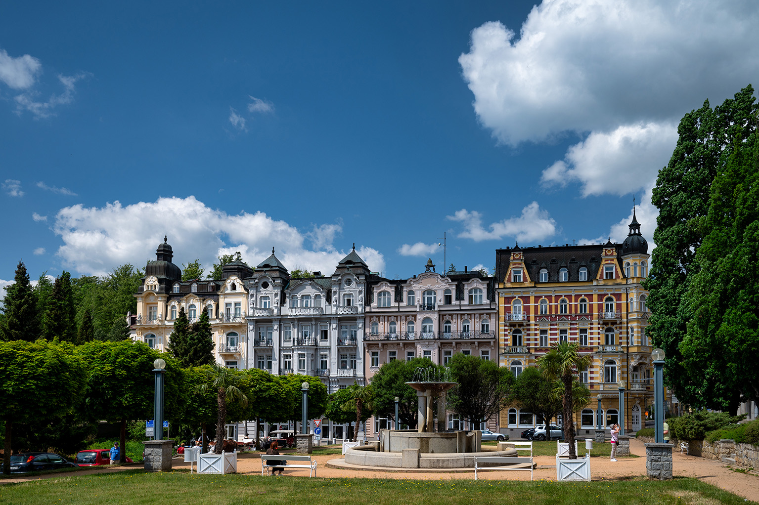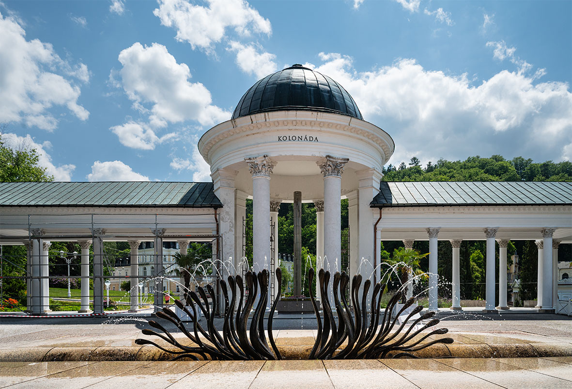 Die Tage in Karlsbad gingen viel zu schnell vorbei, aber es gab noch einen weiteren Augenschmaus auf der Rückfahrt – das nicht minder idyllische Marienbad. Wie Karlsbad zählt sie zu den berühmtesten Kurorten, allein im Stadtgebiet gibt es 40 Heilquellen. Dabei ist Marienbad erst im frühen 19. Jahrhundert durch die Trockenlegung eines Sumpfes als Kurort aus der Taufe gehoben worden und erlebte seine Blütezeit im späten 19. und frühen 20. Jahrhundert. Eine der bekanntesten Sehenswürdigkeiten ist die große Hauptkolonnade. Diese Eisenkonstruktion wurde 1889 erbaut und ist eine der größten in Tschechien. Zahlreiche Persönlichkeiten wie Goethe, Frédéric Chopin, Mark Twain und Sigmund Freud zählten zu Kurgästen der romantischen Stadt. Eine moderne Attraktion ist die Singende Fontäne, die 1986 eröffnet wurde und zu bestimmten Tageszeiten eine Choreografie von Wasserstrahlen mit musikalischer Untermalung bietet.