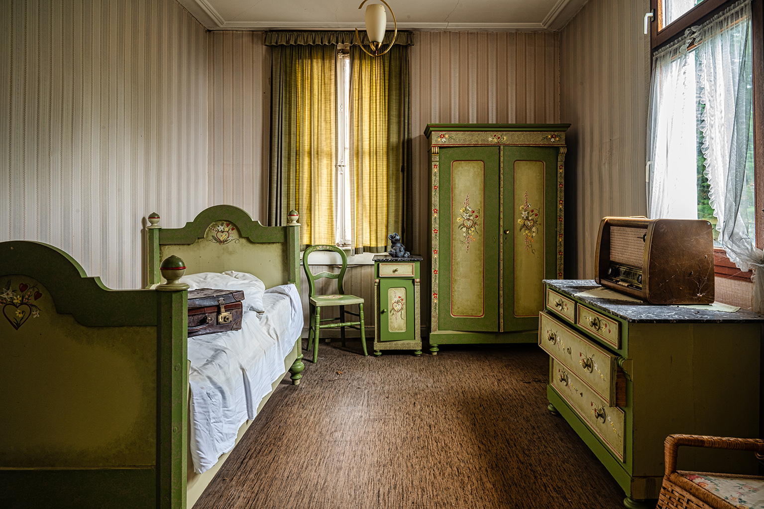 Der 4. November 2023 war ein trüber und düsterer Tag und passte daher perfekt, um auf die ebensolche Location des Kurhauses Sand im Nordschwarzwald einzustimmen. Die Geschichte des heutigen Lost Places reicht bis ins Jahr 1845 zurück. Damals wurde dort eine einfache Schutzhütte für Waldarbeiter und Fuhrleute errichtet. Das Gebäude wurde im Laufe der Jahrzehnte mehrfach aus- und umgebaut, bis schließlich Mitte der 1870er Jahre ein Gasthaus und später ein Kurhaus eingerichtet wurde. Seine Blütezeit erlebte das Kurhaus Sand in den 1970er Jahren, als sich die gesamte Region zu einem beliebten Tourismus- und Wintersportgebiet entwickelte. 1994 wurde das Kurhaus geschlossen und gilt heute als einer der bekanntesten Lost Places, da der Zugang nach Bezahlen des Eintritts vollkommen legal ist. Und der Preis lohnt sich, da alle Möbel, das Geschirr, Bücher und andere Alltagsgegenstände erhalten geblieben sind. Es wirkt, als sei die Zeit stehen geblieben und man beträte eine Welt aus der Vergangenheit.